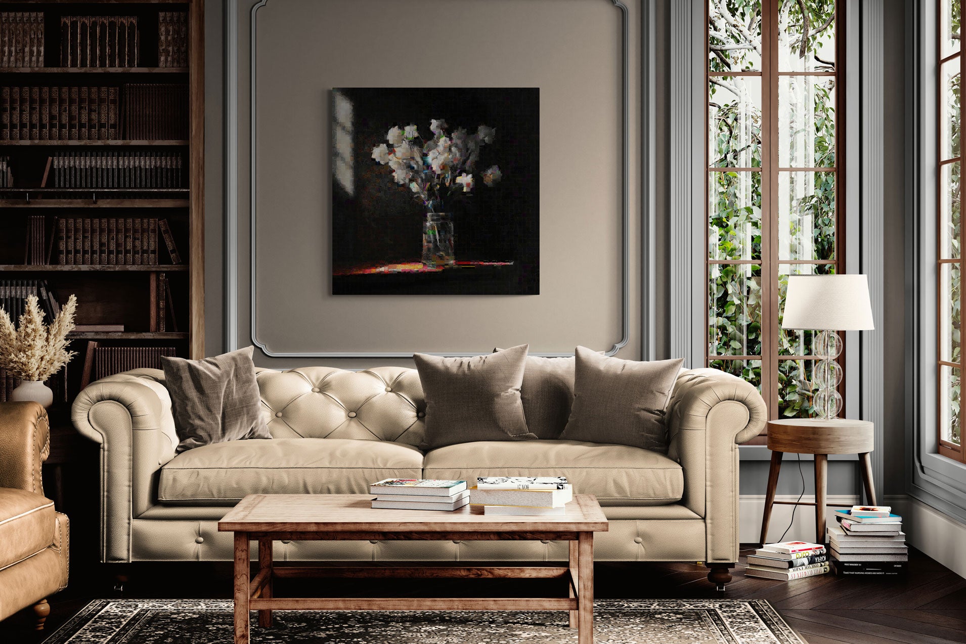Each piece reimagines original works, blending diverse styles and concepts. The tiles in each piece are sourced from selected works.