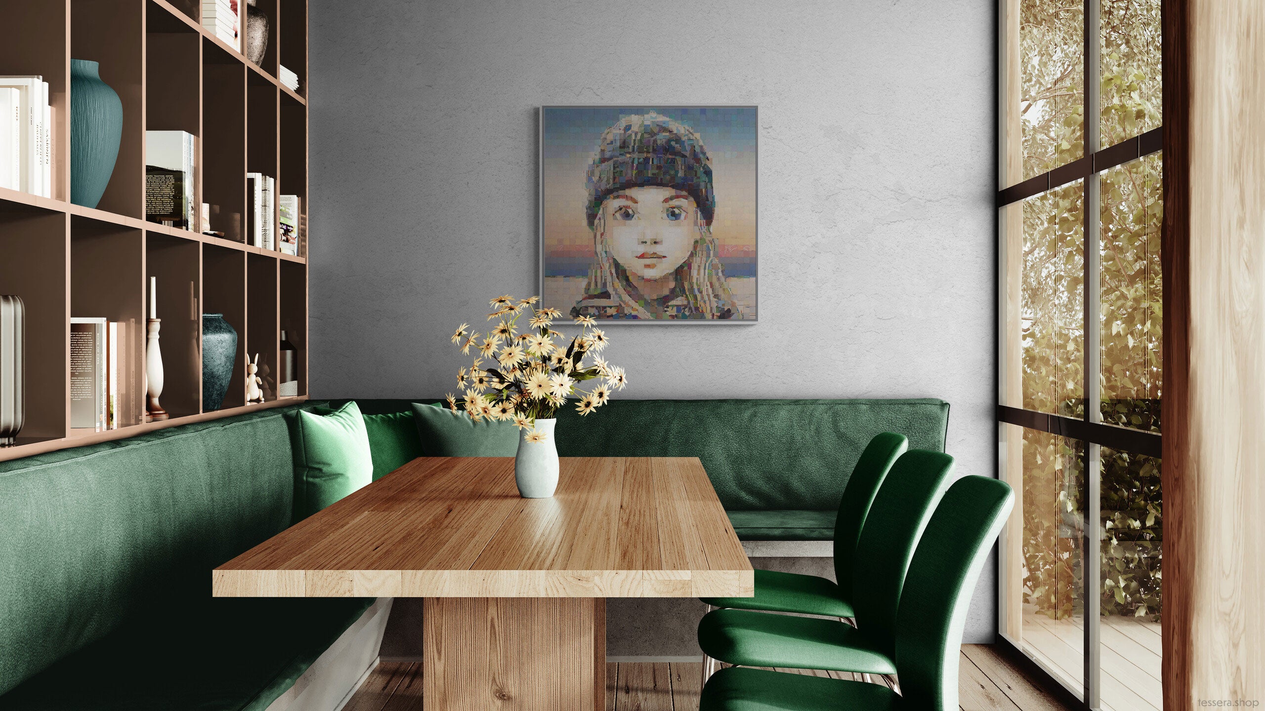 Gallery quality fine art print. These prints are crafted with gallery quality, UV-protected inks on satin canvas, Tessera prints offer vibrant colors and sharp detail. Mounted on sustainable pine frames each piece is ready to hang. Full print on the front with mirrored sides.