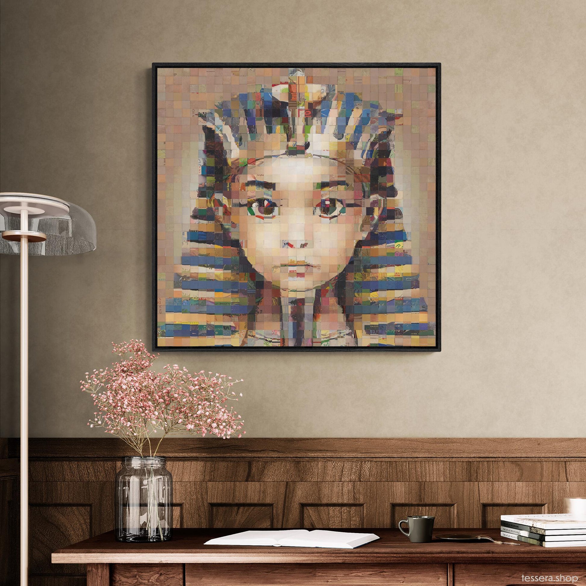 Gallery quality fine art print. These prints are crafted with gallery quality, UV-protected inks on satin canvas, Tessera prints offer vibrant colors and sharp detail. Mounted on sustainable pine frames each piece is ready to hang. Full print on the front with mirrored sides.