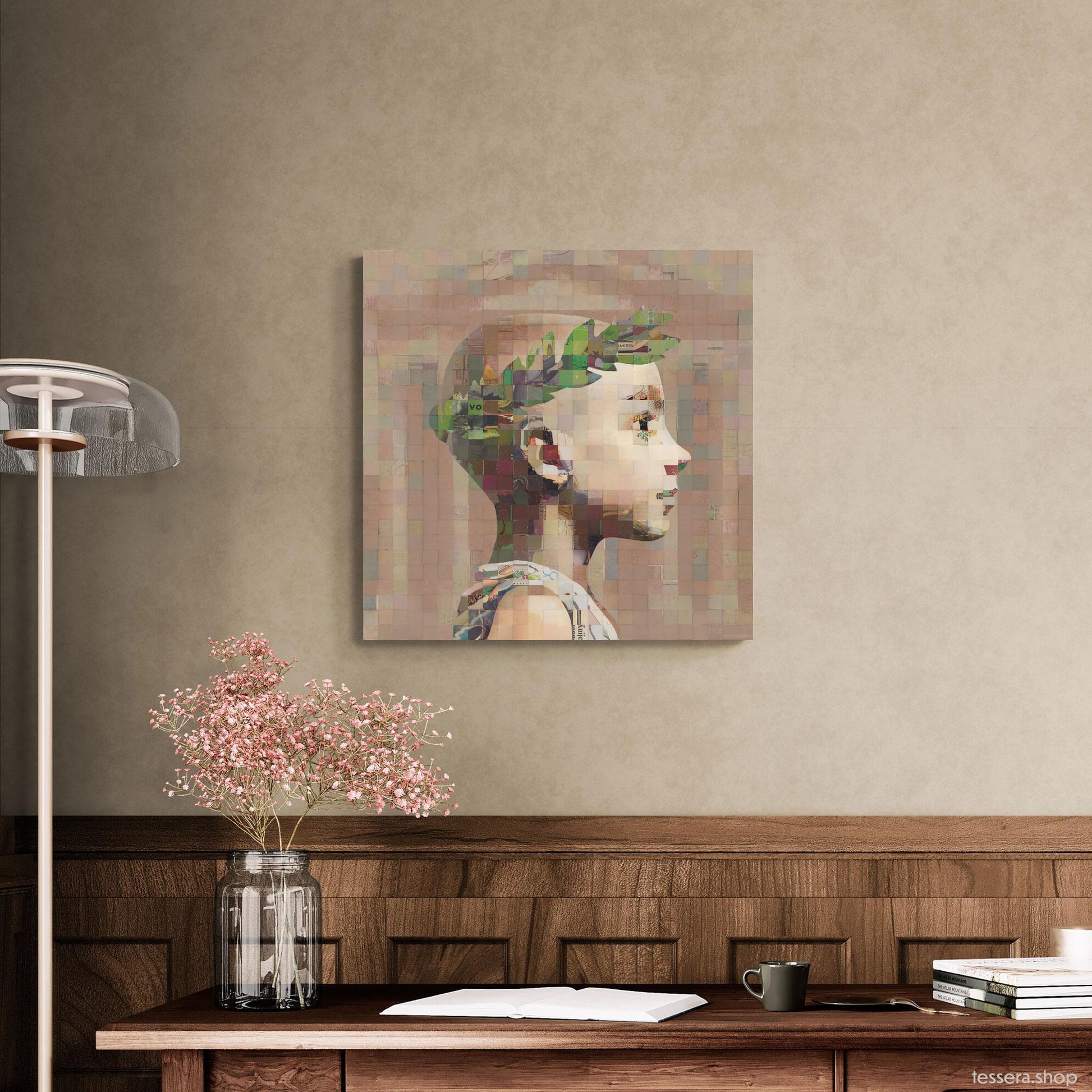 Gallery quality fine art print. These prints are crafted with gallery quality, UV-protected inks on satin canvas, Tessera prints offer vibrant colors and sharp detail. Mounted on sustainable pine frames each piece is ready to hang. Full print on the front with mirrored sides.