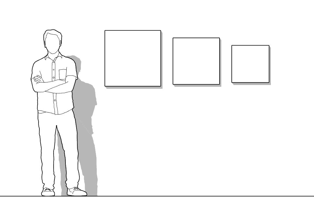Tessera II artworks may appear different in size as shown in product images. For reference use this drawing to compare canvas sizes next to a person.
