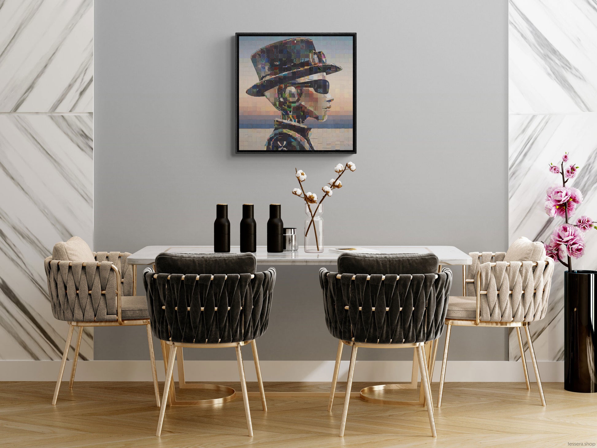 Gallery quality fine art print. These prints are crafted with gallery quality, UV-protected inks on satin canvas, Tessera prints offer vibrant colors and sharp detail. Mounted on sustainable pine frames each piece is ready to hang. Full print on the front with mirrored sides.
