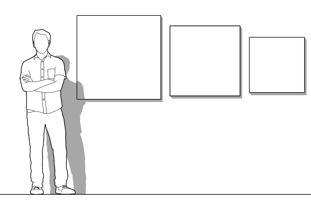 Tessera artworks may appear different in size as shown in product images. For reference use this drawing to compare canvas sizes next to a person.